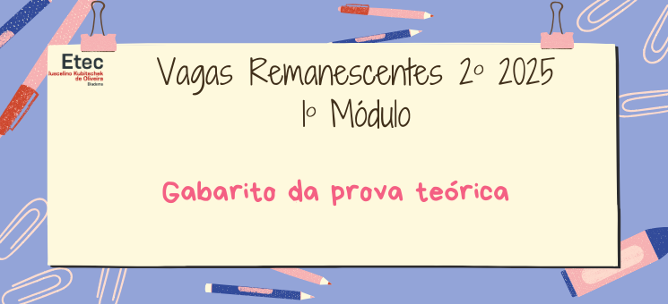 Confira o gabarito da prova de Vagas Remanescentes dos 1ºs módulos.