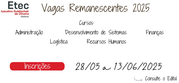 Estão abertas as inscrições para o Processo Especial de Seleção de Candidatos para preenchimento das vagas remanescentes dos cursos técnicos para os módulos finais.