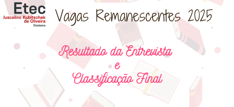 Confira o resultado da entrevista e a classificação final do Processo de Vagas Remanescentes do 2º semestre de 2025.